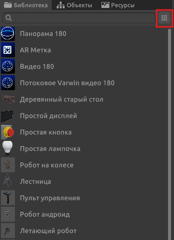 Добавили возможность удобного чтения названий объектов и ресурсов: переключение в виде плитки/списка во вкладках «Библиотека», «Ресурсы» и в окне выбора ресурсов.